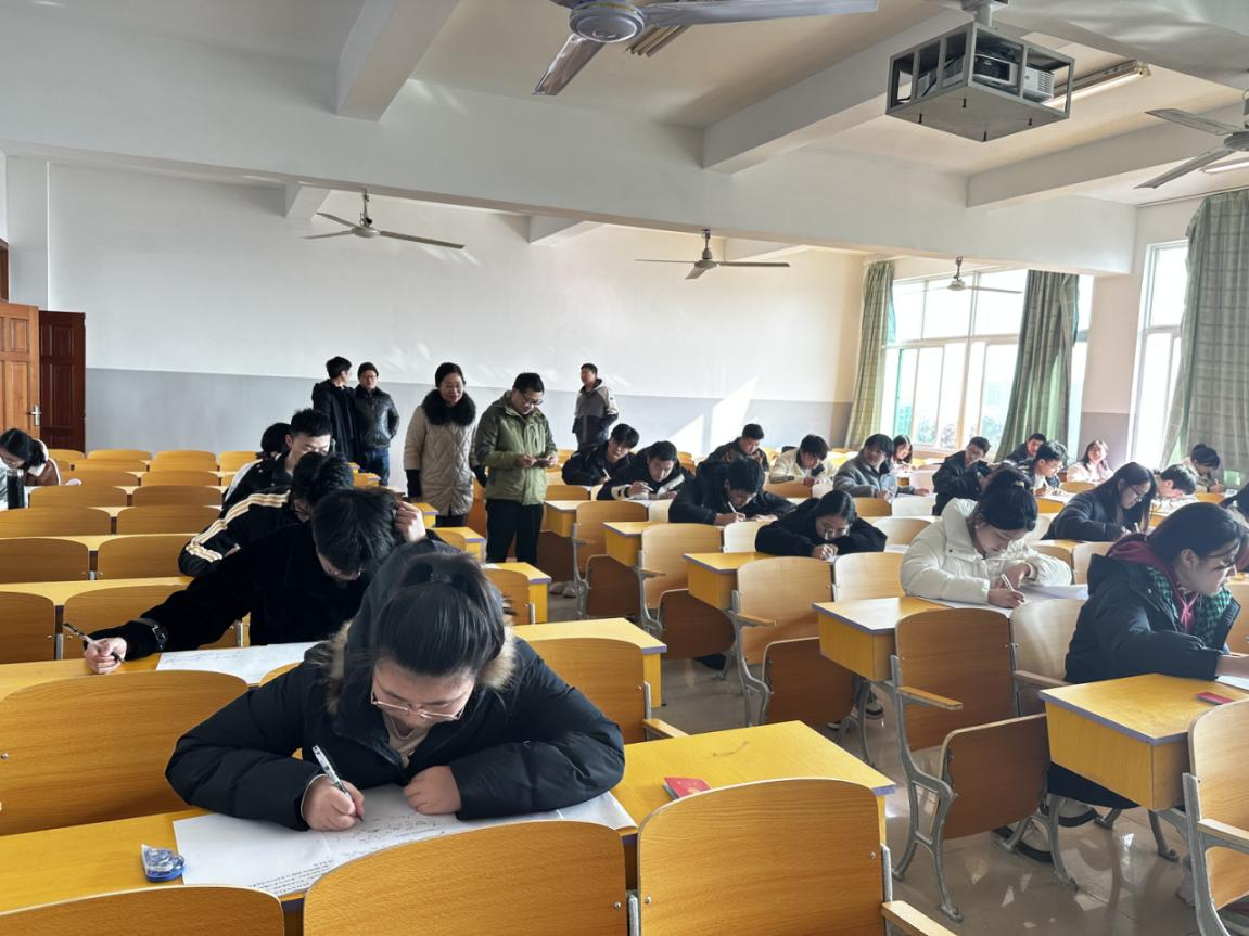 为强化期末考试组织管理,严肃考风考纪,确保考试工作顺利进行,2025年1月6日,学院党委书记刘庆言、副院长龚霞和学生党总支书记彭玉萌深入beat365官网学生的考场教室,开展期末考试巡查工作。