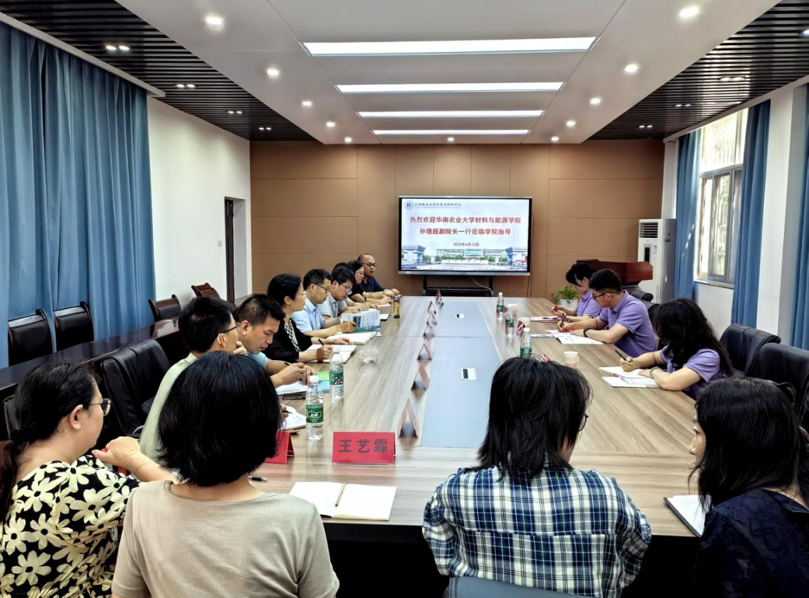 2025年6月13日上午,华南农业大学材料与能源学院副院长孙理超副教授、生物质能源与材料专业主任邓丽芳副教授、材料与能源学院学工办主任毛丹娟来beat365官网调研交流。学院党委书记刘庆言、副院长卢丽敏、副院长龚霞、系主任和各教研室主任、学工办负责人参加了调研会议。会议由副院长龚霞主持。