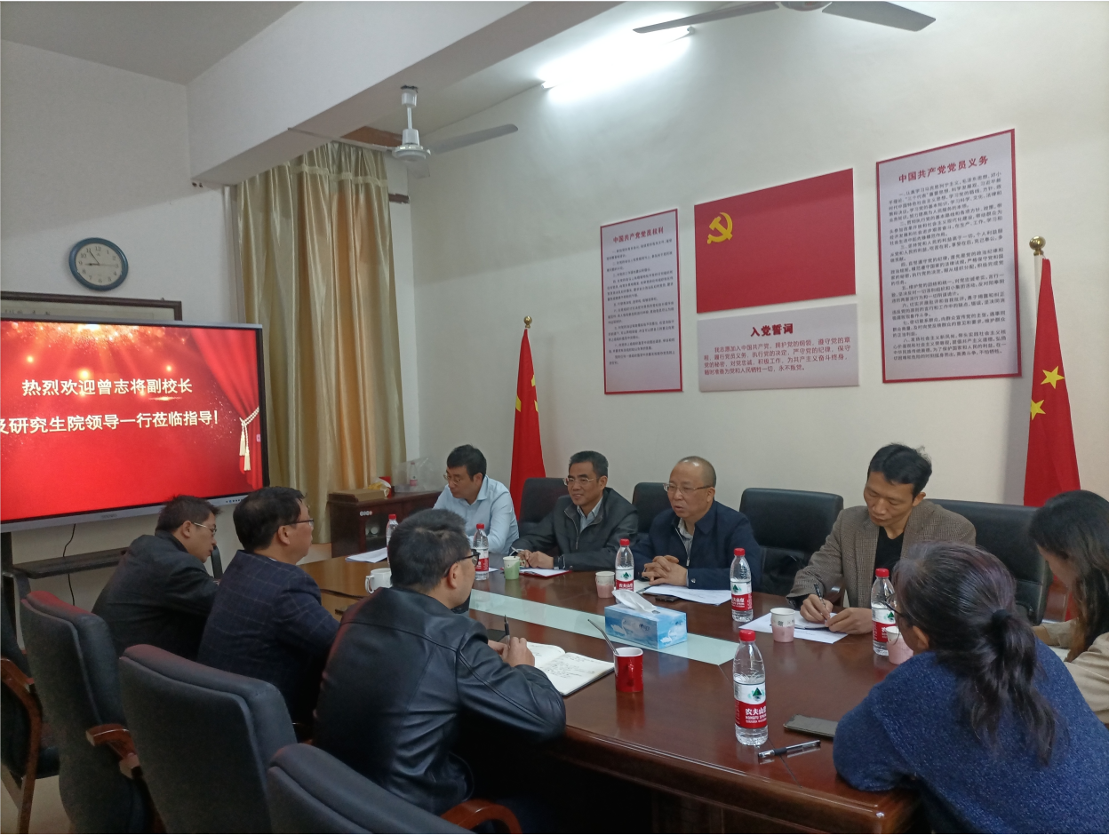 2022年10月14日上午,校党委委员、副校长曾志将在研究生院陈美球院长一行陪同下,到我院调研指导关于材料与化工专业硕士学位点的申报工作。学院全体班子成员、各科室负责人参加座谈会。