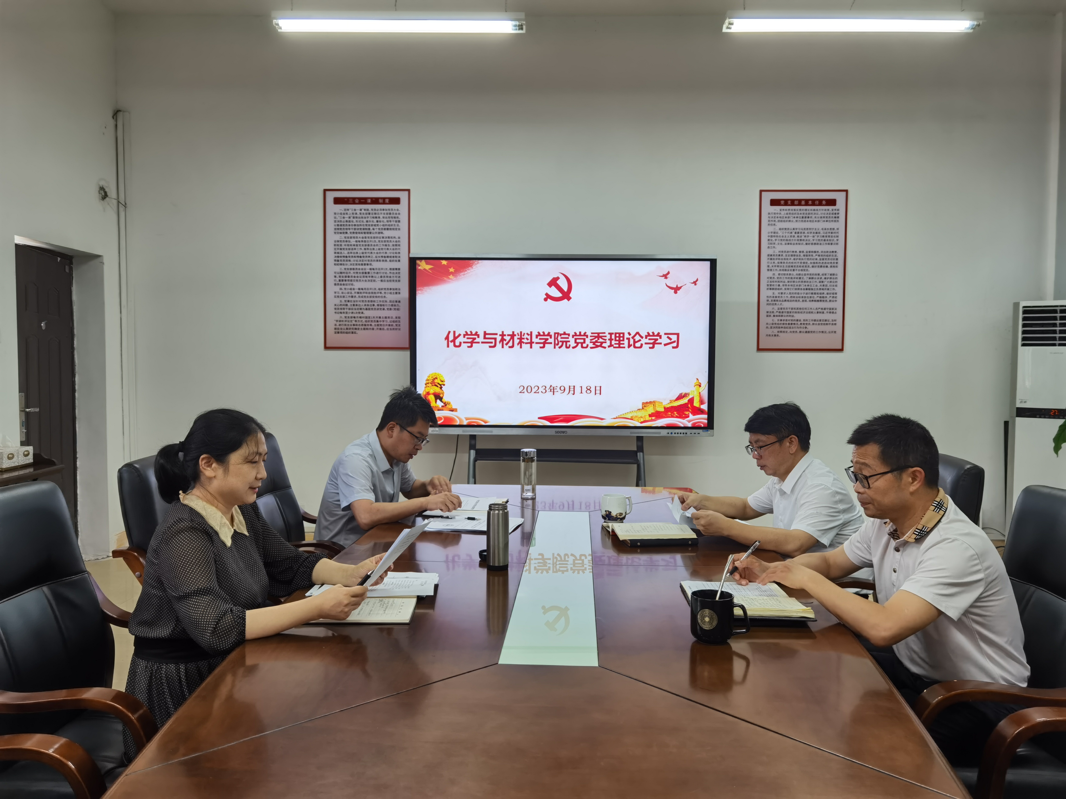 2023年9月18日8:10,学院党委在致理楼215会议室召开理论学习会议,学院全体党委委员参加会议。会议由学院党委书记刘庆言主持。
