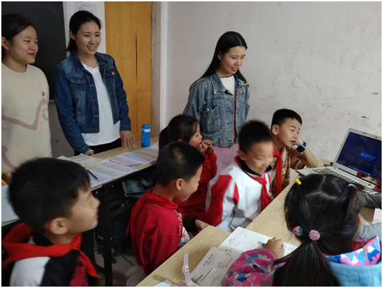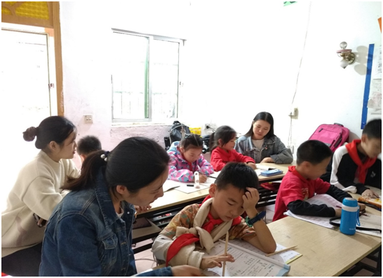 活动中,大家先帮助小学生们完成了课后练习,耐心为小学生们解答了作业中的难题及学习中的困惑。然后给小学生们播放了《美丽化学》(该视频是由中国科学技术大学先进技术研究院和清华大学出版社联合制作的一个原创数字科普项目。其主旨是将化学的美丽和神奇通过数字技术和媒体传递给大众),并为小学生们讲解了一些生活中的化学小知识。视频播放过程中,小学生们对化学反应现象十分感兴趣,不断提出疑惑,化学魅力深深的吸引着小学生们。