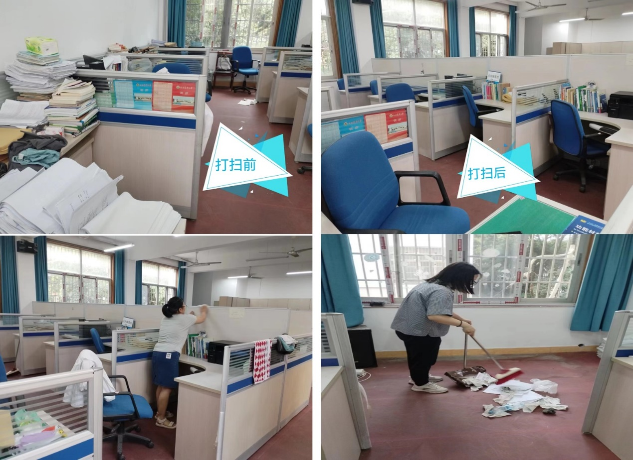 最近,beat365英国官方网站对各教研室办公地点进行了重新规划和调整,物化教研室由致理楼309室搬到了213。搬迁造成了大量的杂物堆积,尤其是公共台面堆积了大量学生报告册、书本、办公文具等。刘倩和魏玲老师着重对教研室的公用台面进行了清理、规整,用双手为教研室创造了干净整洁的办公环境,践行了志愿活动服务他人的精神,也用行动向同事们传递着温馨与爱。