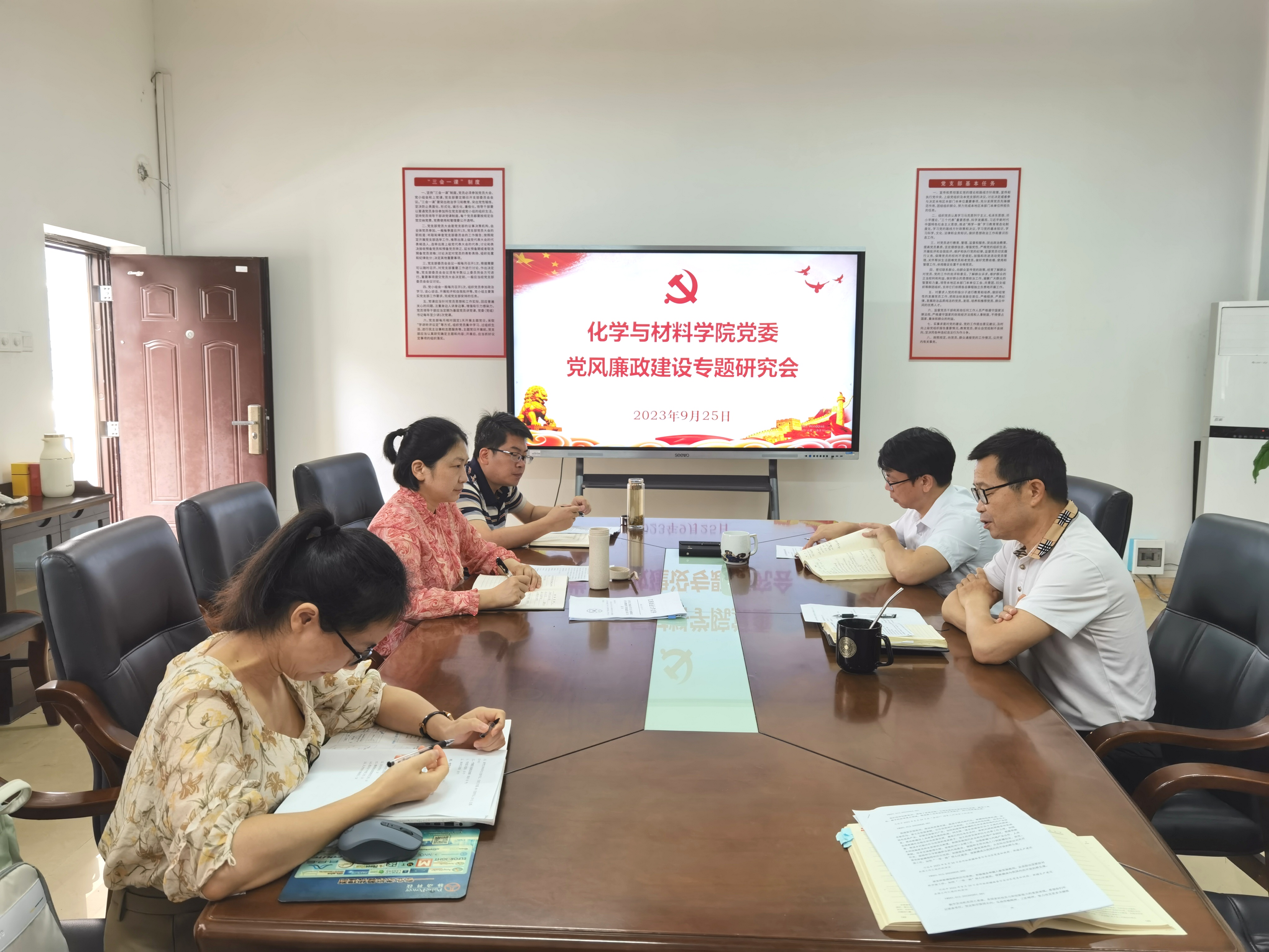 20239259:00,学院党委在致理楼215会议室召开党风廉政建设专题研究会,学院全体党委委员参加会议。会议由学院党委书记刘庆言主持。