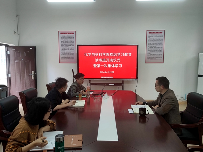 2024年4月22日8:50,学院党委在致理楼215室举行党纪学习教育读书班开班仪式。全体在家党委委员参会,学生党总支书记彭玉萌列席会议,学院党委书记刘庆言主持会议。