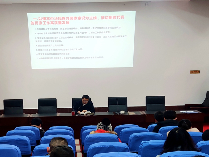 2022年12月13日14:10,学院在致学楼大会议室召开学院教职工大会进行了政治学习,院党委书记刘庆言带领全体教职工学习了《习近平谈治国理政》第四卷之十《积极开展全过程人民民主》的相关内容。