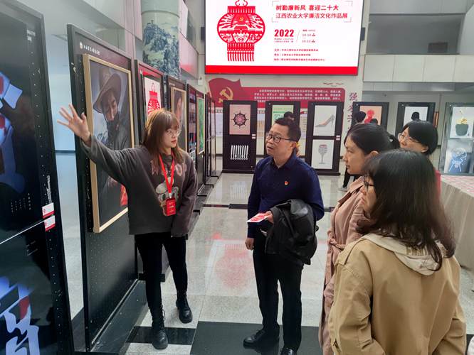 2022年10月12日10:00,根据学校有关要求,学院党委组织全体坐班制人员、系主任及教研室主任在校办公大楼集中参观了“树勤廉新风 喜迎二十大”廉洁文化作品展。