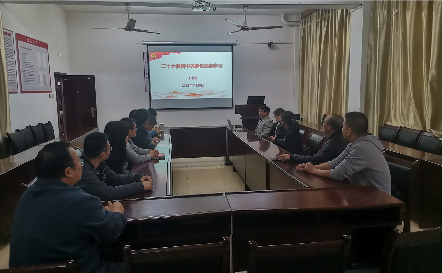 为了深入学习领会党的二十大精神,在新征程上努力开创化学系党支部工作新局面,2022年11月8日下午,化学系党支部召开党的二十大精神主题学习会,院长王宗德作党的二十大精神宣讲报告,贺雪梅主持,化学系党支部全体党员参加。