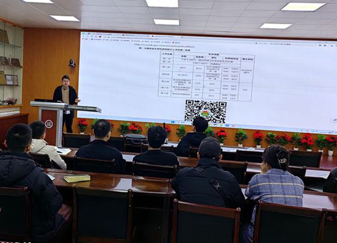 学术交流后,卢院长2024届博士生做引才招聘宣讲报告,宣讲会上,卢院长详细阐述了我校的引才优惠政策以及化材院的发展情况,鼓励和欢迎优秀学子到江西农业大学来贡献才智
