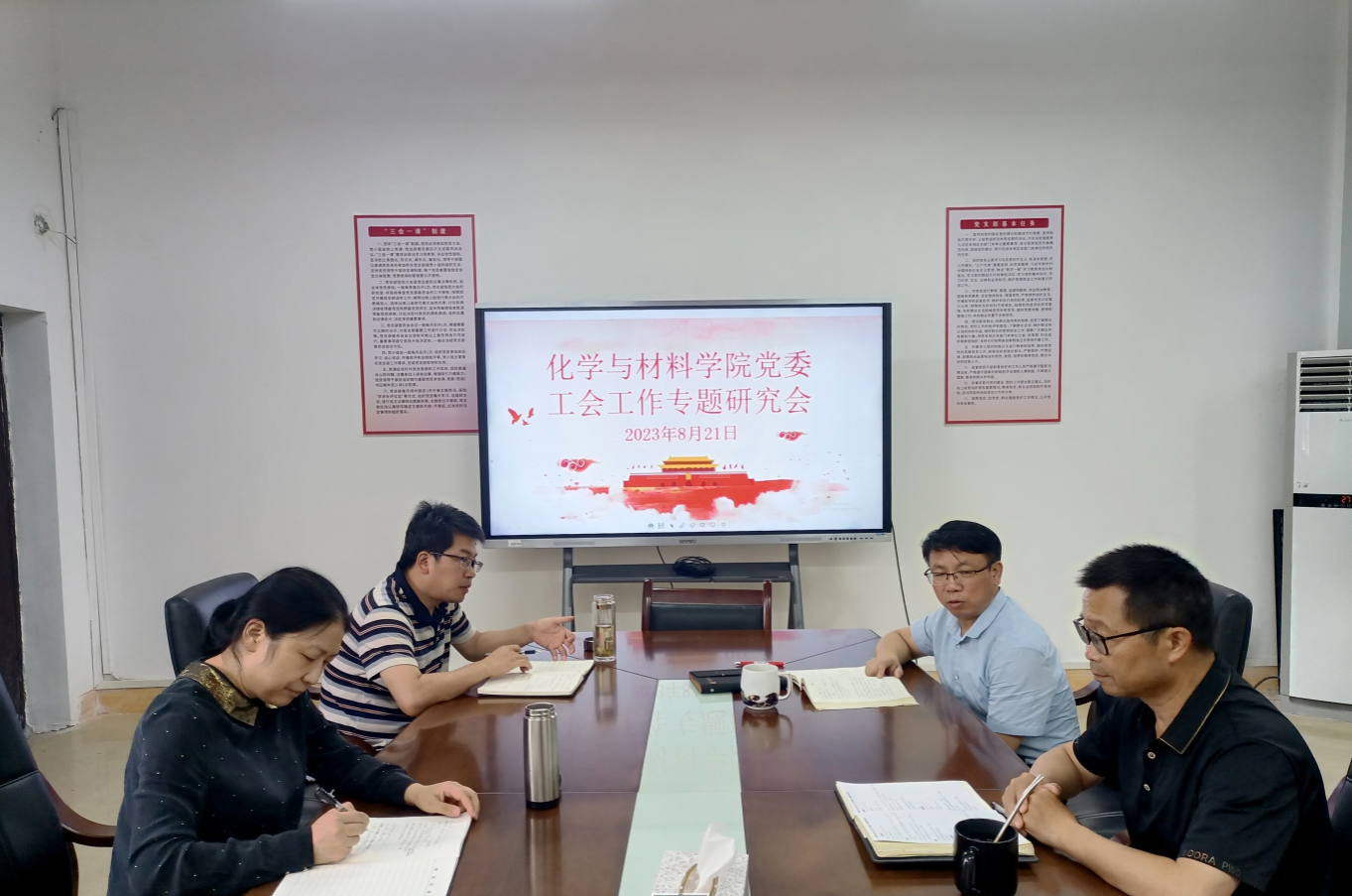 2023年8月21日10:00,学院党委在致理楼215会议室召开专题会议研究工会工作,学院全体党委委员参加会议,工会主席聂旭亮列席会议(线上)。会议由学院党委书记刘庆言主持。