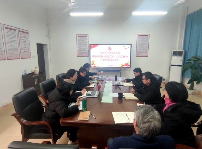 会议伊始,学生党总支书记彭玉萌领学了习近平总书记关于安全稳定工作的重要讲话精神,通报了习近平总书记对“1.24”新余特别重大火灾事故的重要指示精神,学习了学校关于平安校园建设的有关文件和制度。尔后,副院长卢丽敏、副院长龚霞、彭玉萌就实验楼安全管理、办公楼安全管理及学生安全管理中存在的隐患与风险进行了分析,提出了相应的解决思路。其他与会人员结合自己的工作实际分别提出宝贵的意见和建议。接着,院长王宗德从完善消防设施、强化人员管理及建立长效机制等方面对近期安全稳定工作、综治工作和平安校园建设工作作出部署。