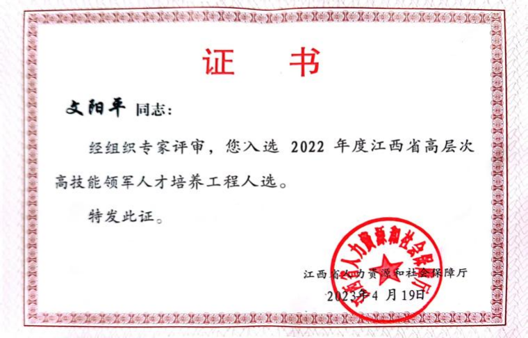 2023年7月,从江西省人力资源和社会保障厅传来喜讯,2022年度江西省高层次高技能领军人才培养工程(以下简称“双高工程”)人选名单正式公布,经个人申报、专家评审、社会公示等程序,材料与化工支部党员文阳平同志成功入选2022年度江西省“双高工程”人选,这是beat365官网高层次高技能领军人才培养的重大突破。