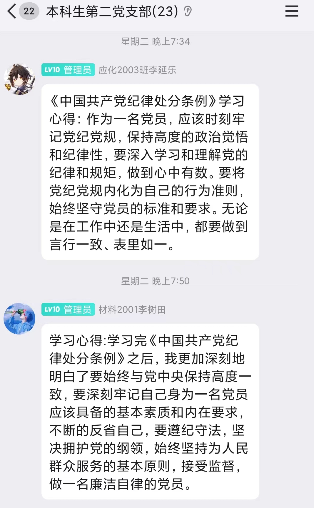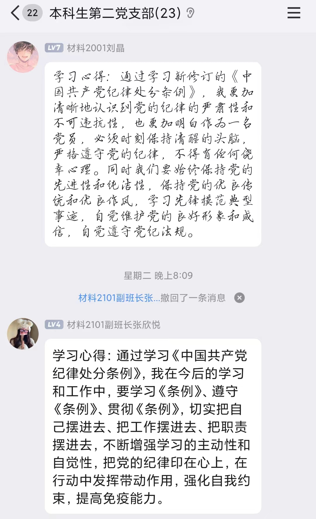 2024年4月30日,本科生第二党支部通过线上线下相结合的方式开展4月份主题党日,组织支部党员认真学习《中国共产党纪律处分条例》(下文简称《条例》)第一章“总体要求和适用范围”及第二章“违纪与纪律处分”条款内容。
