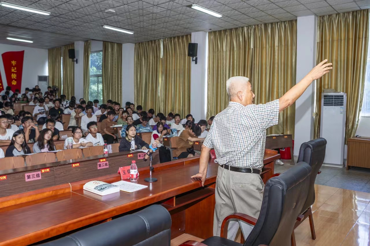 为加强新生理想信念教育,引导新生传承红色基因、赓续红色血脉,2023年9月27日下午,学院党委书记刘庆言和退休教师王锦祥为2023级新生共上一堂题为《学习校友前辈事迹,传承红色基因,强国有我,助力实现中国式现代化》的专题党课。
