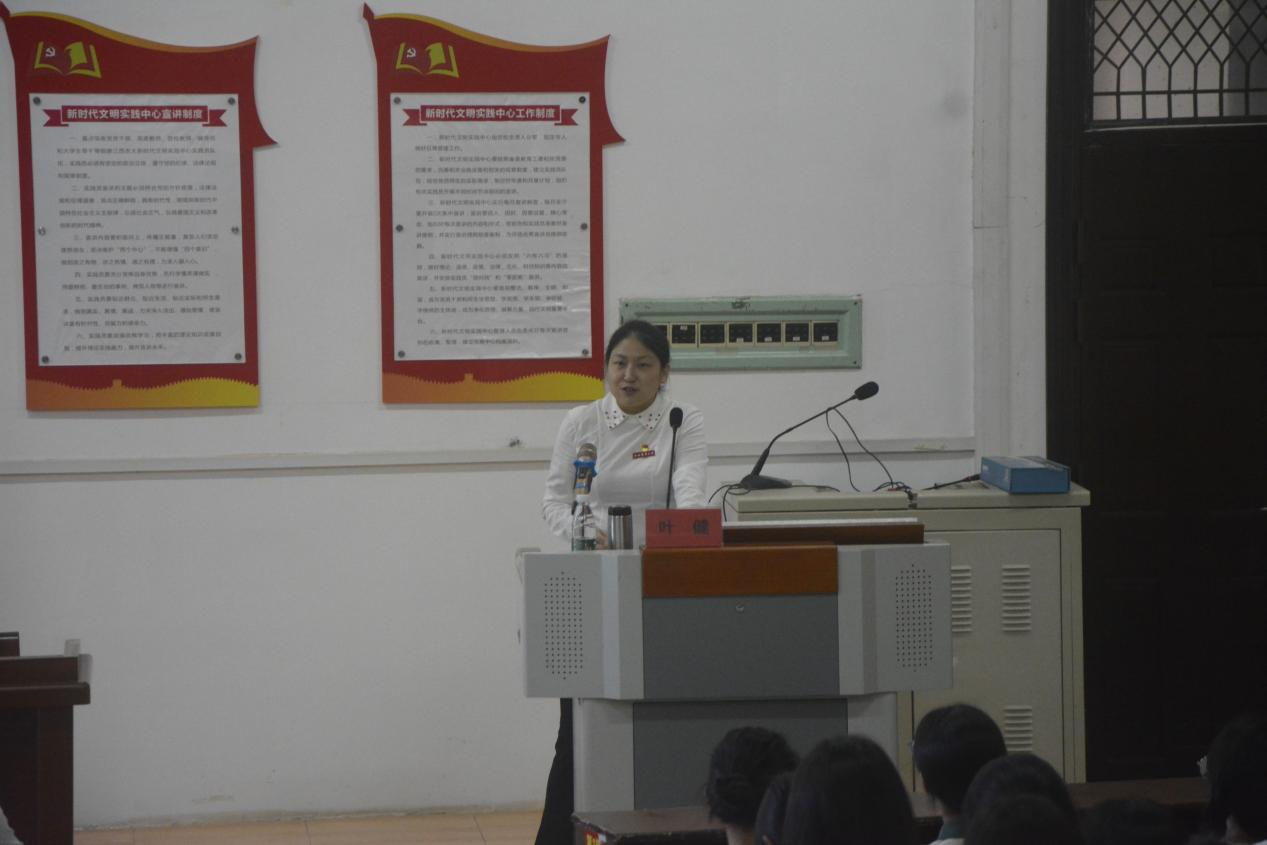 叶健从“共和国勋章”获得者张富清和“时代楷模”王继才两位党员的感人事迹引入,从“入党的标准及条件”、“入党积极分子的培养和考察”和“预备党员的教育、考察和转正”等五个方面对大学生入党流程进行了详细讲解,为学生解答了“为什么要入党?”“怎样才能入党?”“大学生入党有哪些流程”“如何成为一名优秀党员?”。最后,叶健勉励新生要坚定理想信念,树立远大志向,敢于挑战自我,把自身所学同祖国发展需求密切结合,让美好青春在祖国大地上绽放出绚丽之花。
