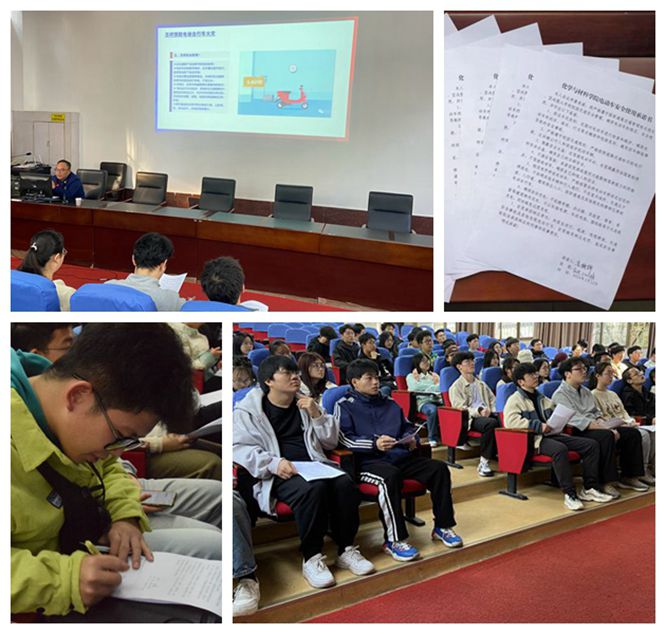 开展车主培训,警示教育做到位。3月12日下午,beat365官网邀请经开区消防大队火灾调查员孙强给全院139名学生电动自行车车主进行安全警示教育集中培训,培训内容包括电动自行车火灾的主要致灾原因、如何预防电动自行车火灾的具体措施、火灾事故中的消防安全责任等。同时,beat365官网还组织电动车车主集中签订了《化材院电动自行车安全使用承诺书》,让全体电动车车主深刻接受警示教育,提高安全用车意识。