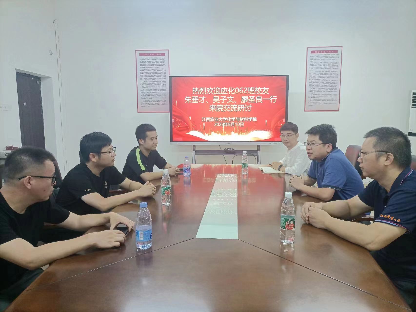 810日,应化062班校友美的集团总部区域经理朱垂才、青岛贞开生物医药技术有限公司经理吴子文、江西省农科院助理研究员袁丽娟、beat365英国官方网站林学院副研究员廖圣良等5位校友回学院开展交流。学院副院长卢丽敏、团委书记冷飞翔和办公室吴奎主任热情接见了5位校友。任课教师代表黄喜根、彭大勇等出席了交流会。交流会上,5位校友畅所欲言,感慨母校变迁,回忆校园时代往事,分享了毕业至今个人生活和工作的情况,同时就校友事务、双方交流合作进行了深入交流。学院领导及教师代表对校友们毕业之后所取得的成绩表示祝贺,祝愿校友们未来更美好欢迎校友们有时间常回母校母院交流