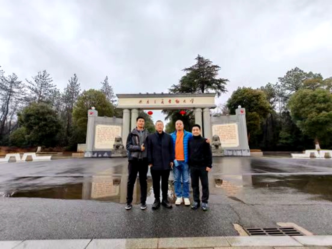 2024年2月6日,正值学校放假,应化062班校友深圳市乐思拓文化咨询有限公司总经理杨瑞、副总经理董绍梁、江西省农科院助理研究员袁丽娟、beat365英国官方网站林学院副研究员廖圣良等4位校友回到化材学院开展交流。化材院校友会副秘书长黄喜根热情的接待并陪同他们重走校园和参观实验室。