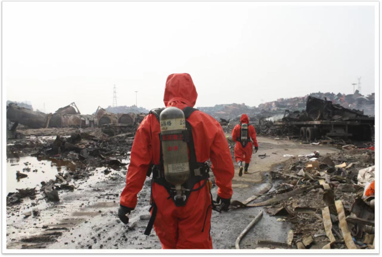 陈淑华参加2015年天津滨海新区爆炸事故救援行动(左一为陈淑华)