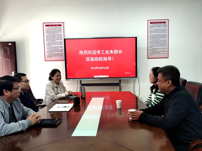 2023年10月24日9:30,校党委学工部(处)长朱国海送干部邓雪云博士到beat365官网任职并开展交流座谈。学院党委书记刘庆言、院长王宗德、党委副书记叶健参加本次座谈会。