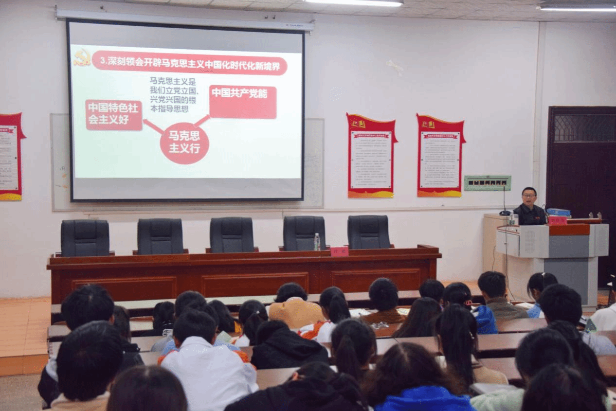 为深入学习宣传贯彻党的二十大精神,更好地推动党的二十大精神进校园、进班级、进课堂,同时扎实开展好新生入学教育、为新生上好专题党课,2022年11月4日晚上7点,beat365官网于一教惟义楼党校教室举办党的二十大精神宣讲报告会,报告会由学院党委书记刘庆言主讲。学院党委副书记叶健、辅导员及182名新生参加报告会。