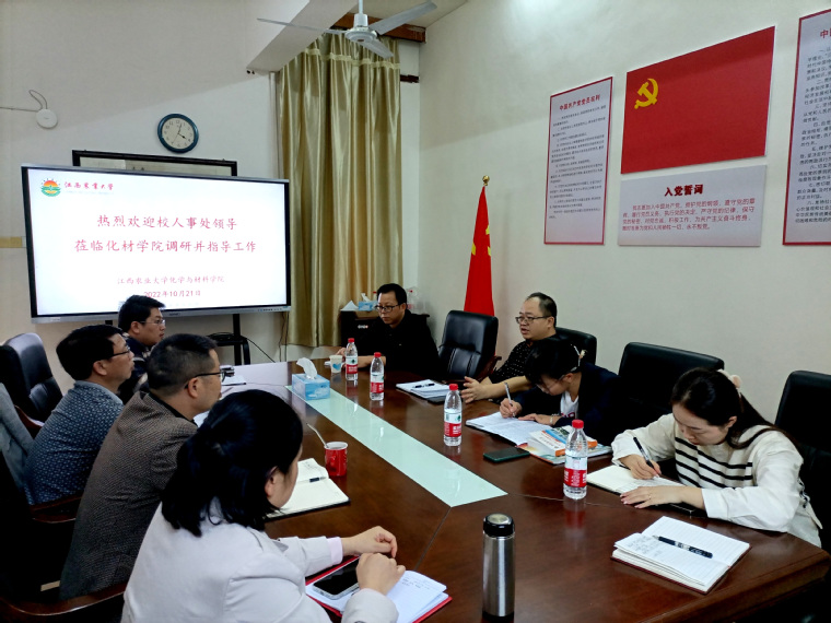 2022年10月21日,人事处副处长黄新志等一行4人到化材学院开展人才人事工作调研。学院党委书记刘庆言、院长王宗德、副书记叶健、副院长卢丽敏等参加调研座谈。