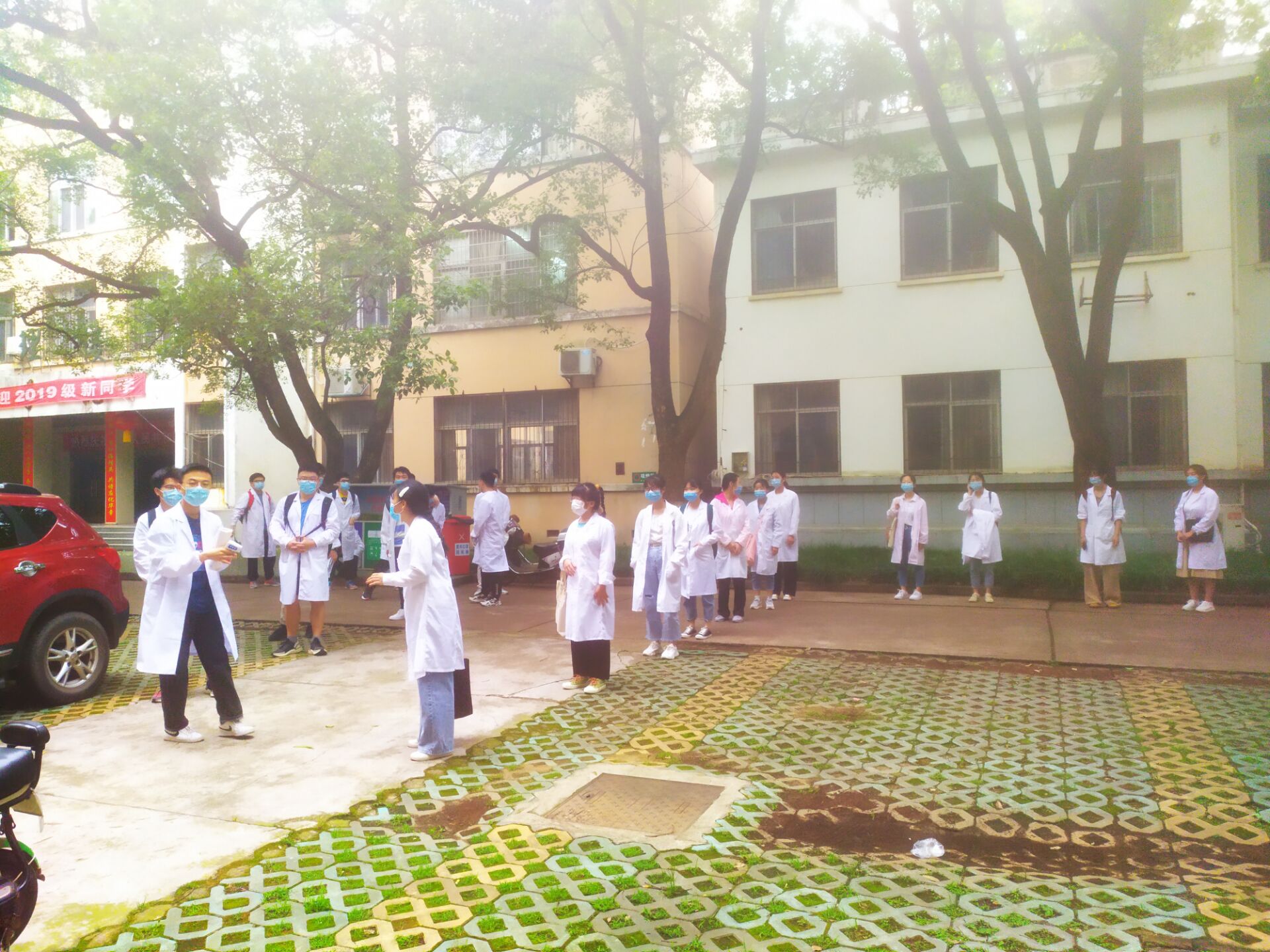“消毒,测温,隔距,排队”。5月27日起,beat365官网18级的110名同学开始上线下实验课。为保障学生线下课程的安全有序,学院领导一大早便到实验楼门口协调学生进实验楼的消毒、检测程序,强调安全防护知识。学院坚持每天早晚对实验楼各进行一次全面消毒,每天只安排一个自然班进楼上实验课,每个自然班又再分成小班开展实验教学,尽一切努力确保学生线下课程安全有序。