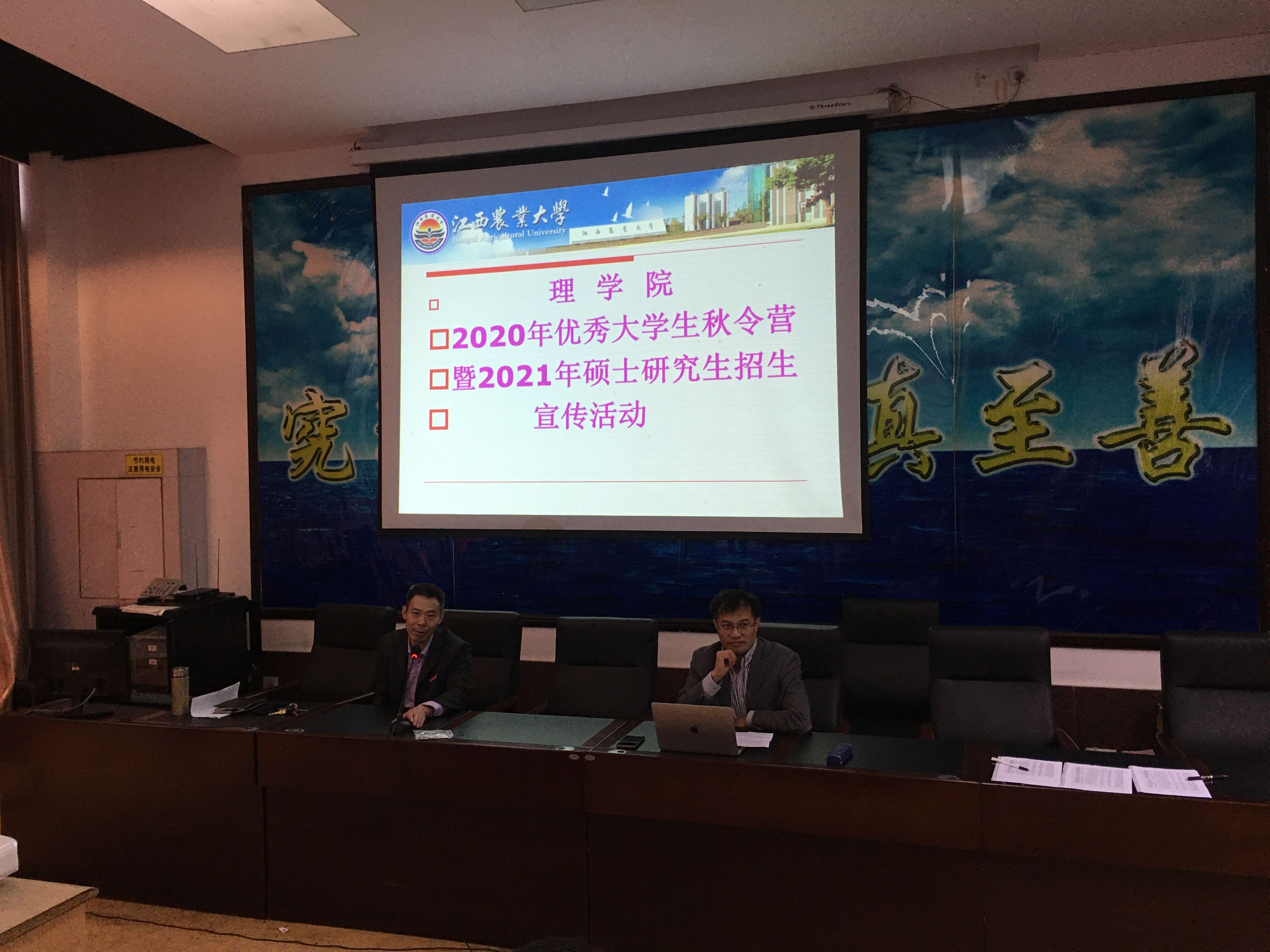 9月22日下午2:00,学院在一楼报告厅举办2020年优秀大学生秋令营暨2021年硕士研究生招生宣传活动。院长王义华、副院长黄长干、学院全体研究生导师及考研学子近九十人参加活动。