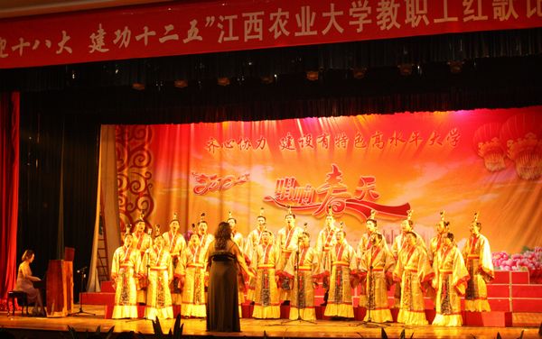 “喜迎十八大,建功十二五”全校教职工红歌比赛于6月5日晚在校大礼堂举行。 beat365官网组织了21名男教师以中国第一部清唱剧《长恨歌》中《渔阳鼙鼓动起来》歌曲参赛。虽然艺术类歌曲难度大,但大家在黄玲老师的指导下刻苦排练,最终以92.3分的好成绩获得了二等奖。(院办张琳报道)