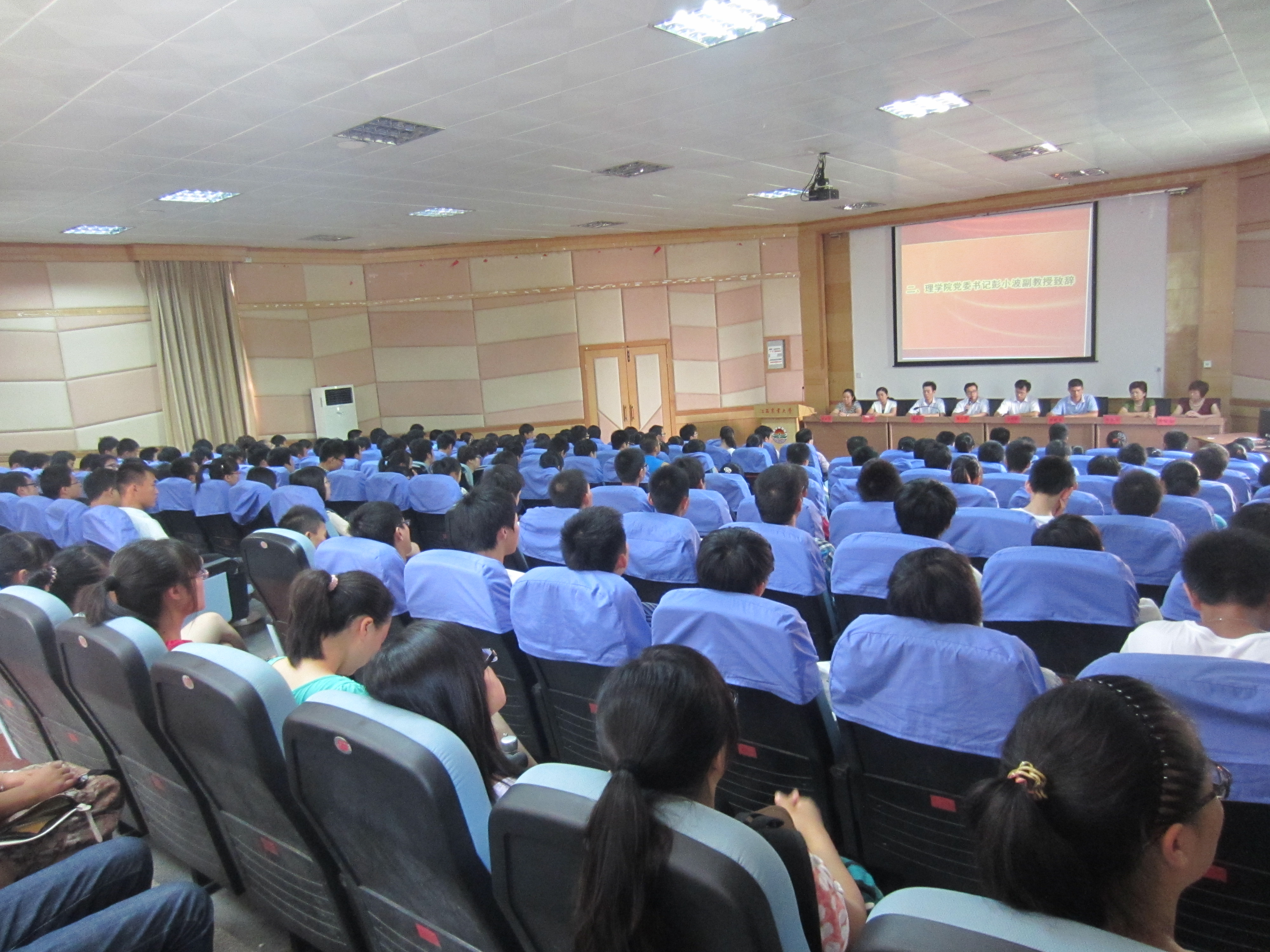 9月11日14:30,beat365英国官方网站理学院2012级新生入学典礼在国土院科技报告厅隆重举行。理学院党政领导、团委书记、化学系和数学系主任、新生班主任、新生辅导员及研究生、本科生共200余人参加。典礼由院党委副书记周国平主持。