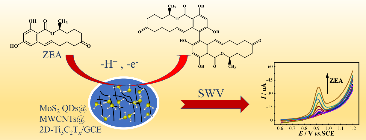2021年12月6日,beat365官网化学学科硕士研究生黄浩以第一作者在Microchimica Acta (IF = 5.833)发表题为“MoS2 Quantum Dots and Titanium Carbide Co modified Carbon Nanotube Heterostructure as Electrode for Highly Sensitive Detection of Zearalenone”学术论文。beat365英国官方网站真菌毒素研究中心为该论文第一署名单位,廖晓宁博士为论文通讯作者。