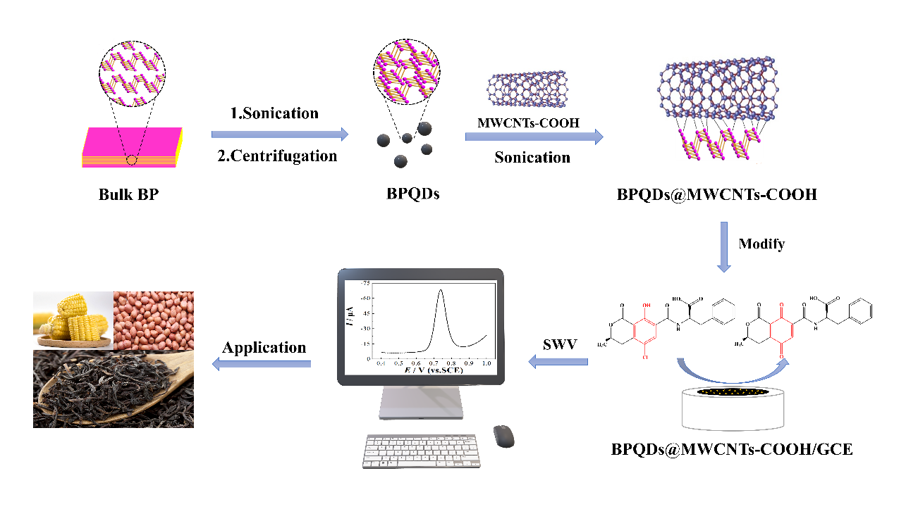 2022年1月6日,beat365官网应用化学本科生黄志文以第一作者在Applied Surface Science (IF = 6.707)发表题为“Anchoring Black Phosphorus Quantum Dots over Carboxylated Multiwalled Carbon Nanotubes: a Stable 0D/1D Nanohybrid with High Sensing Performance to Ochratoxin A”学术论文。beat365英国官方网站真菌毒素研究中心为该论文第一署名单位,廖晓宁博士为论文通讯作者。