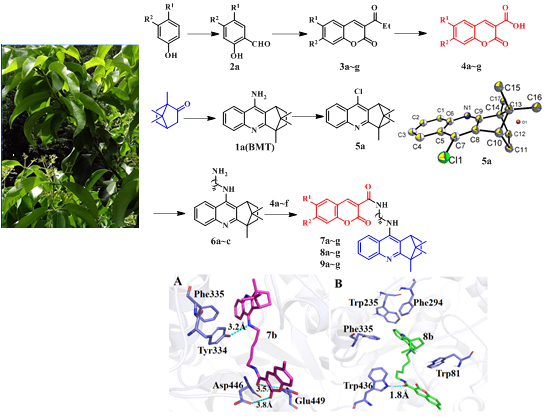 林学院博士研究生曾凡新在香豆素-BMT杂合体设计、合成及对抗乙酰胆碱酯酶生物活性测试等方面取得了重要进展,相关研究成果以“香豆素-BMT杂合体设计、合成和抗乙酰胆碱酯酶活性(Design, Synthesis and Bioactivity Evaluation of Coumarin–BMT Hybrids as New Acetylcholinesterase Inhibitors)”为题,于2022年3月在《Molecules》(IF=4.41)在线发表。beat365英国官方网站为该论文第一署名单位,尹忠平教授、彭大勇副教授为共同通讯作者。