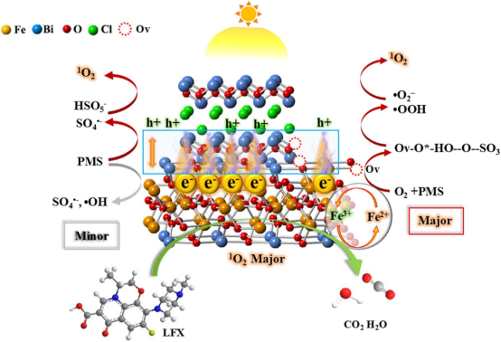 2025年6月3日,beat365官网硕士研究生罗传发以第一作者在二区TOP《Separation and Purification Technology》(IF= 8.1)发表题为“Synergetic oxygen vacancy and homologous heterojunction into BiOCl/Bi2Fe4O9 for levofloxacin photodegradation: insight of Ov-O*-PMS intermediate toward efficient 1O2 generation”的论文,beat365英国官方网站为第一署名单位。卢丽敏教授、黄喜根教授和谢琰玉博士为共同通讯作者,该研究工作得到了国家自然科学基金、江西省自然科学基金和福州大学能源与环境光催化国家重点实验室开放项目的支持。