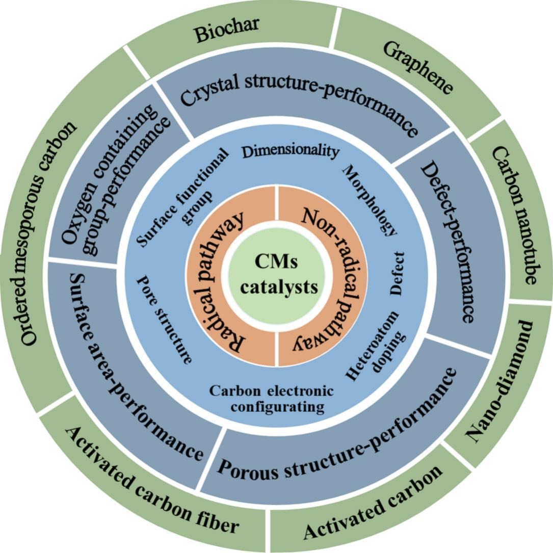 近年来,过硫酸盐基高级氧化技术(PS-AOPs)因其在顽固污染物降解方面的优异表现得到了广泛关注。作为新型高活性催化剂的代表,无金属碳材料(CMs)因其具有比面积高、表面官能团丰富、结构可调性好、生物相容性优异以及环境友好、制备简便等优势被认为是PS-AOPs体系中潜在的催化剂,并被广泛用于清洁能源生产和环境修复等领域。基于此,本文从不同维度全面总结了 PS-AOPs体系中 CMs 基材料种类、催化过程机理、增强 CMs 催化活性策略以及 CMs 微观结构与污染物降解性能间的构效关系。具体来讲,论文首先系统梳理了 CMs 的不同类别、特点和应用。其次,介绍了 CMs 基催化剂催化活化PS过程机制(自由基途径、非自由基途径以及自由基和非自由基协同降解途径)。此外,为了进一步提高 CMs的催化活性和环境影响性能,总结并提出了一些增强CMs催化性能的策略和环境影响评价方法。最后,对 CMs 基材料在环境修复中面临的挑战和应用前景作了进一步展望。